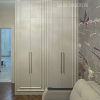 Шкаф для спальни - третий элемент проекта меблировки квартиры. Фасады с изящным молдингом уже украшают интерьер, а завершающий карниз появится на следующем этапе.