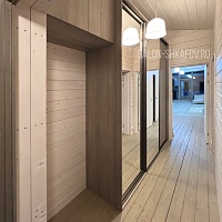 Наша работа - зеркальный шкаф-купе с навесным шкафом. Ещё один элемент проекта для загородного дома.