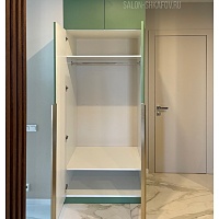 Анна (имя изменено из соображений конфиденциальности) искала нестандартные решения для своей квартиры: хотела яркие шкафы с характером. Мы вместе попробовали разные фрезеровки и оттенки - в итоге получились два небольших распашных шкафа в зелёном и чёрном цвете, идеально вписавшиеся в интерьер.